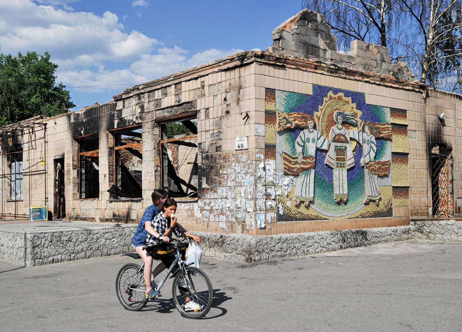 Летом в освобожденном поселке Макаров Киевской области сбили мозаику с девушкой в национальном украинском костюме. «Мозаика, пережившая атаки российских захватчиков и оккупацию, была разрушена местными жителями. Уничтожать то, что не удалось россиянам, — это дно», — сокрушаются в Ukrainian Modernism.