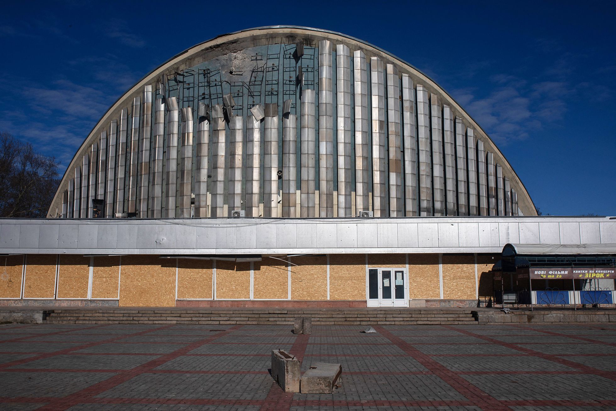 Война в Украине продолжается уже больше года — за это время в стране разрушены и повреждены десятки памятников архитектуры или зданий, имеющих архитектурную ценность. Страдает и советский модернизм, один из самых ярких примеров — киноконцертный зал «Юбилейный» в Херсоне, который во время оккупации был штабом «Единой России», а после освобождения города в него дважды попали российские ракеты. Архитектурный журналист Ася Зольникова рассказывает историю этого здания — и других объектов советского модернизма в Украине.