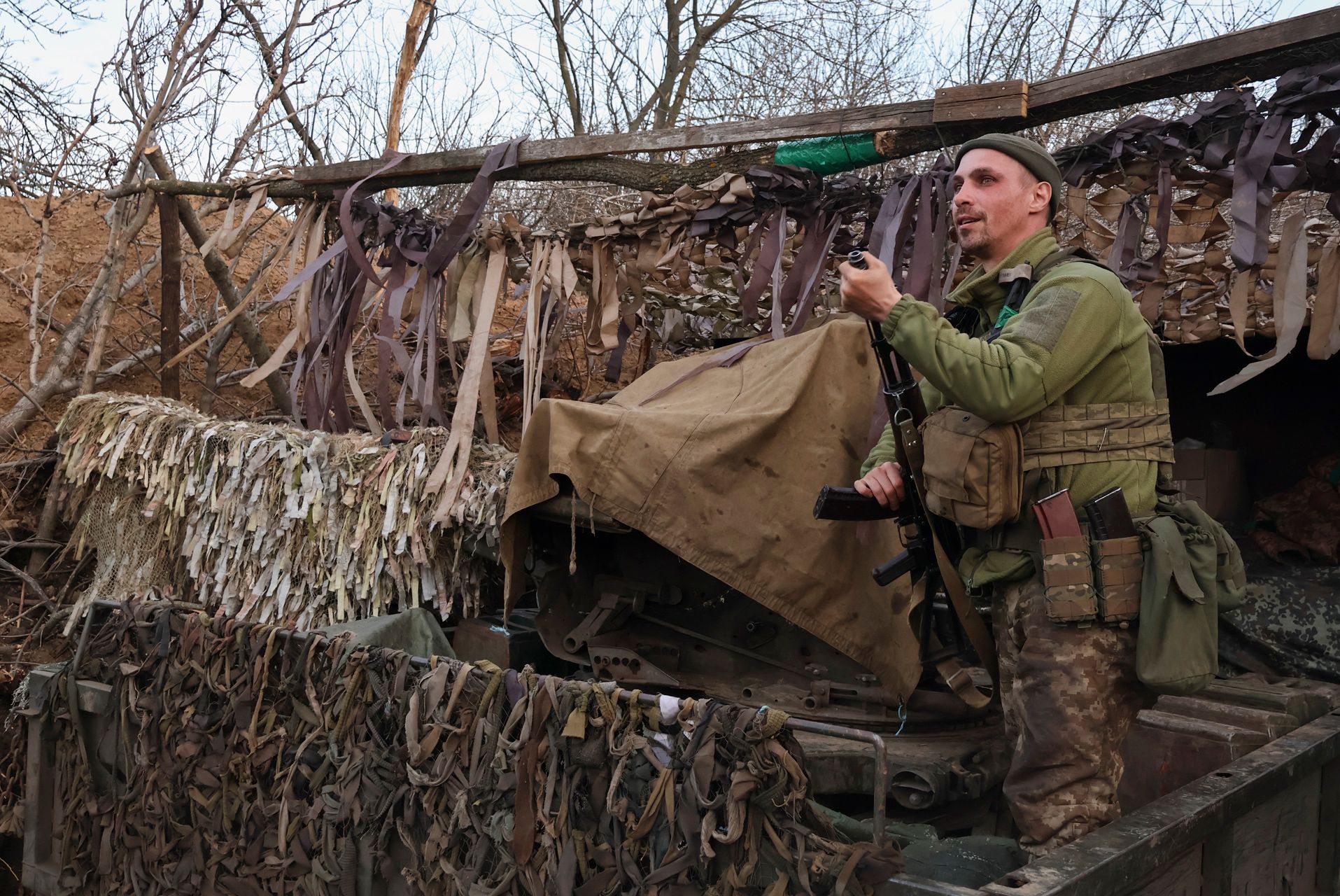 Aris Messinis / AFP / Scanpix / LETA Город Бахмут, который на протяжении более чем полугода штурмуют российские силы (прежде всего отряды ЧВК Вагнера), остается одной из самых горячих точек фронта. На фото — военнослужащие ВСУ на позициях под Бахмутом на фоне замаскированного зенитного орудияRoman Chop / EPA / Scanpix / LETA Военнослужащие ВСУ удерживают позиции под Бахмутом, несмотря на непрекращающиеся попытки штурма со стороны российских сил. Более того, как заявил 25 марта главнокомандующий украинской армией Валерий Залужный, обстановку на бахмутском направлении «удается стабилизировать» — благодаря «титаническим усилиям» военныхAris Messinis / AFP / Scanpix / LETA Зенитные расчеты ВСУ под Бахмутом используют мобильную тактику: никогда не задерживаются долго на одном месте (перемещаются до нескольких раз в течение суток) и всегда тщательно маскируют свои позиции, рассказывали сами военнослужащие