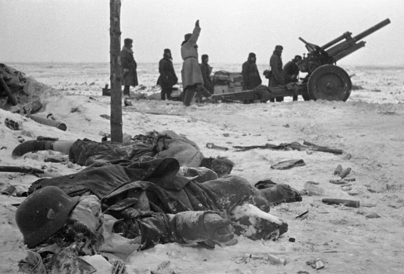 Ночью подходило пополнение: пятьсот — тысяча — две-три тысячи человек. То моряки, то маршевые роты из Сибири, то блокадники (их переправляли по замёрзшему Ладожскому озеру). Утром, после редкой артподготовки, они шли в атаку и оставались лежать перед железнодорожной насыпью. Двигались в атаку черепашьим шагом, пробивая в глубоком снегу траншею, да и сил было мало, особенно у ленинградцев. Снег стоял выше пояса, убитые не падали, застревали в сугробах. Трупы засыпало свежим снежком, а на другой день была новая атака, новые трупы, и за зиму образовались наслоения мертвецов, которые только весною обнажились от снега — скрюченные, перекорёженные, разорванные, раздавленные тела. Целые штабеля.