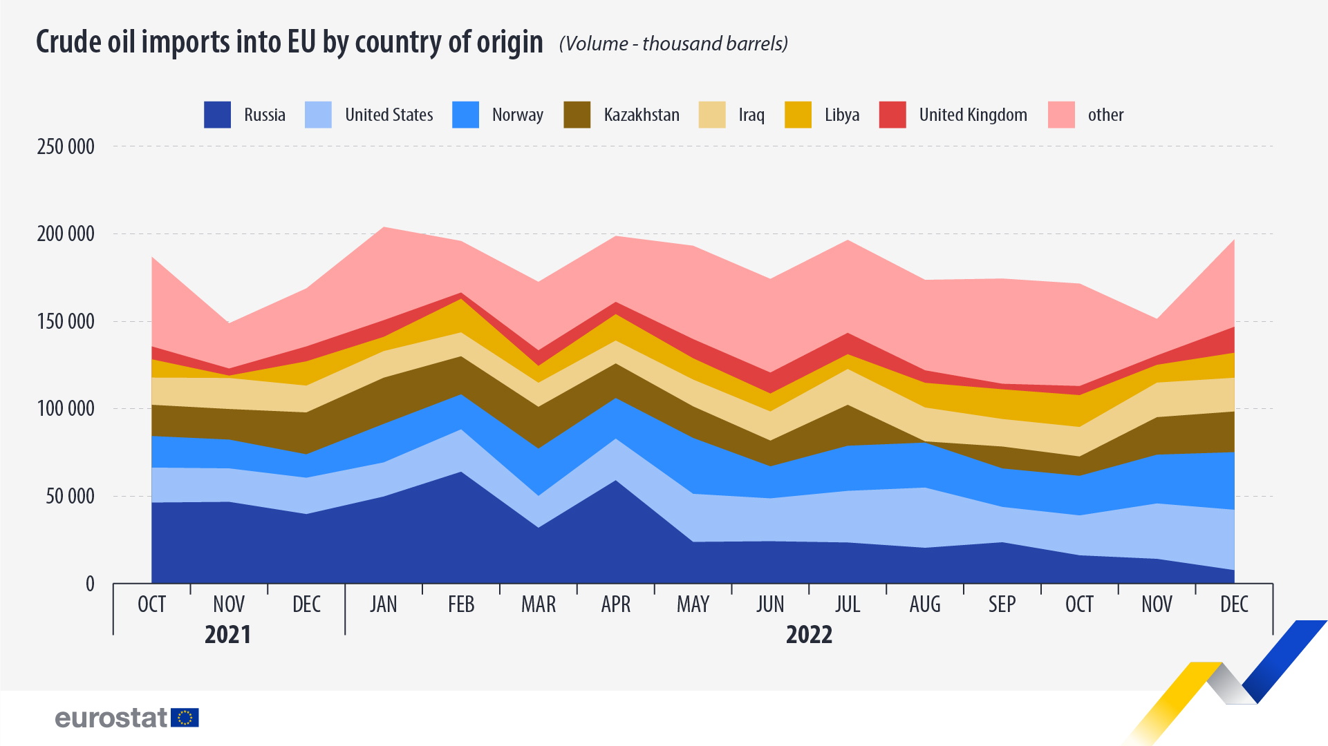 - Среди других ключевых импортеров нефти в ЕС в декабре 2022 года были Казахстан, Ирак, Ливия и Великобритания.