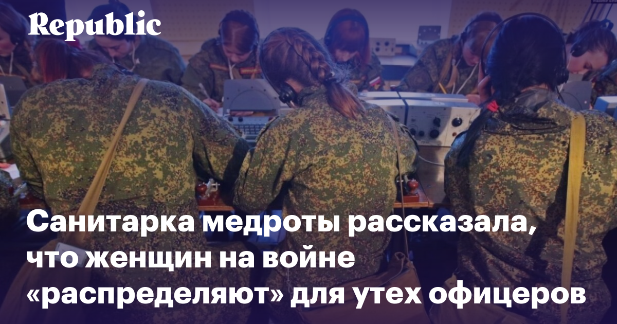Российских женщин-военнослужащих на фронте заставляют становиться полевыми женами офицеров и принуждают к сексуальным связям. Тех, кто отказывается ублажать мужчин в форме, жестоко наказывают: бросают ночевать на улице, могут оставить голодными или отправляют в «красную зону, на самый передок». Об этом в интервью изданию «Север.Реалии» заявила санитарка медицинской роты Маргарита, отправившаяся на войну в Украину по контракту.