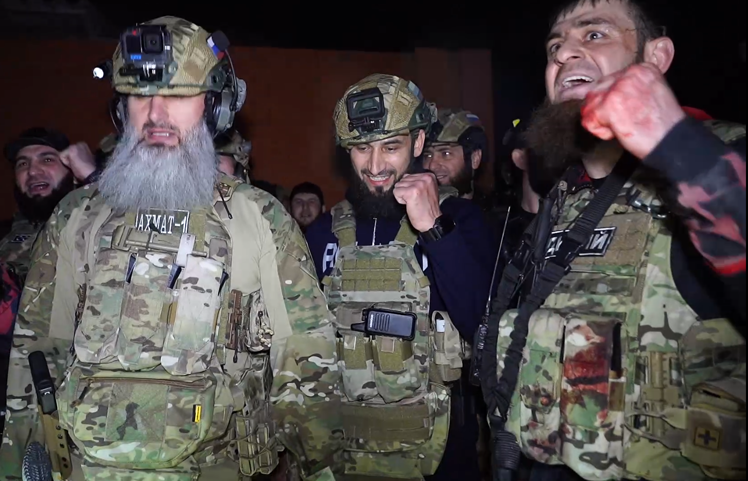 Кадыровцы стоят над телами убитых в Гудермесе. Скриншот видео с официальной страницы Рамзана Кадырова в телеграме