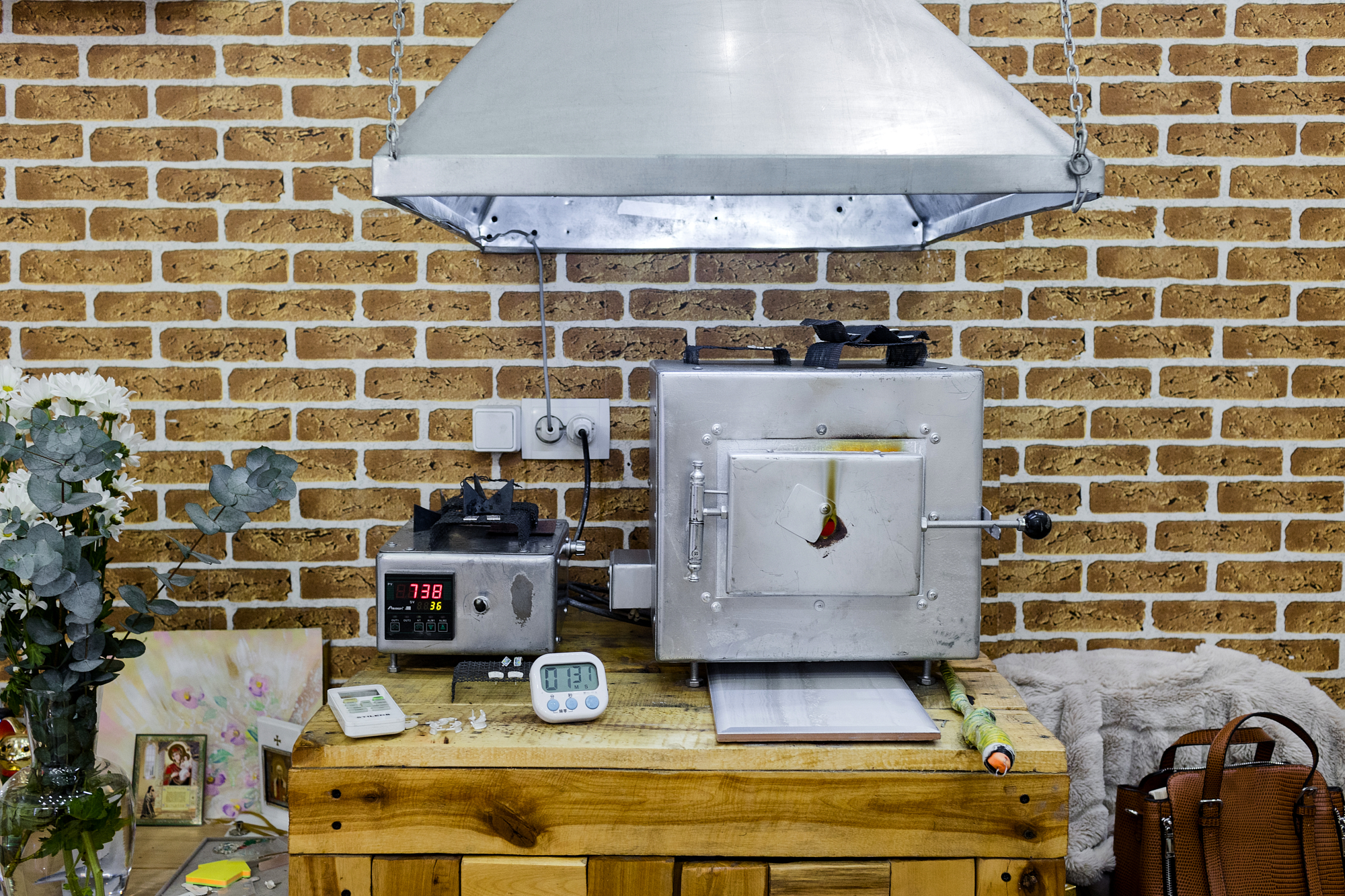 — Сегодня технология осталась прежней — основная работа делается вручную, просто какие-то моменты автоматизировались. Например, вместо ручной полировки используется бор-машинка, а вместо огромной печи из кирпичей — маленькая муфельная печь.