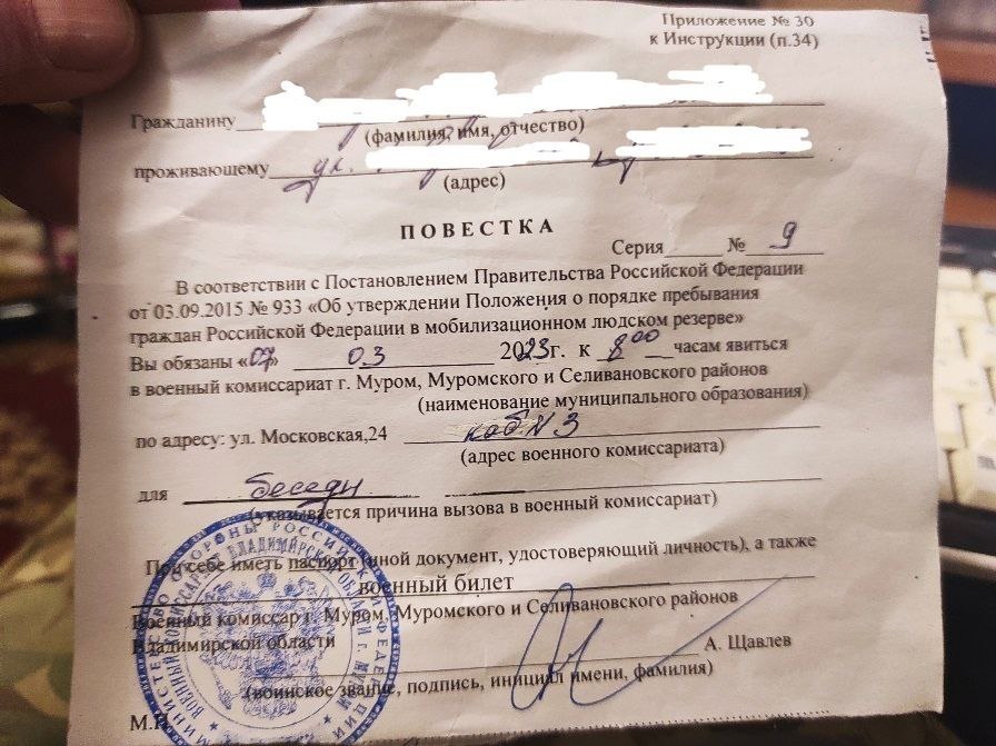 Что грозит за неявку в военкомат по такой повестке?