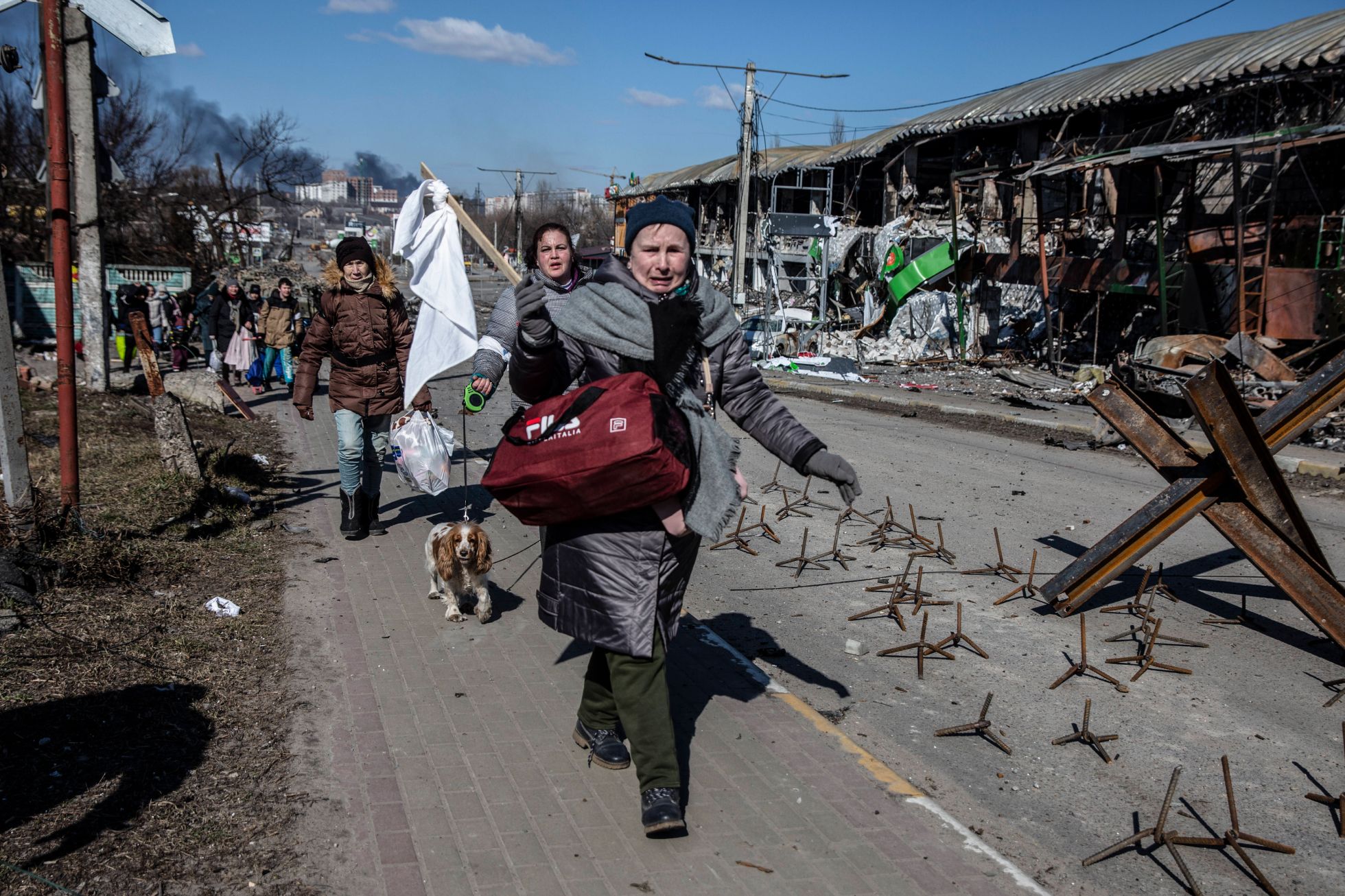 At the [outskirts] of Irpin in the direction of Bucha, I saw a woman holding a white flag. She was crying. [I saw people] with their pet dogs. You could see that the people were very frightened and that they were running from hell.