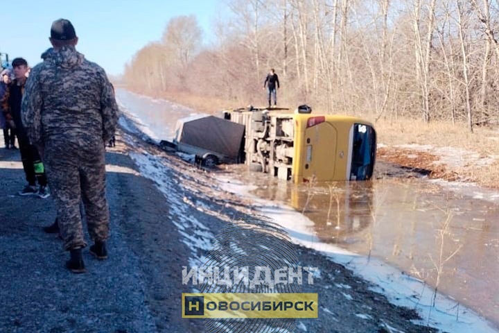 Автобус с людьми перевернулся на трассе под Новосибирском