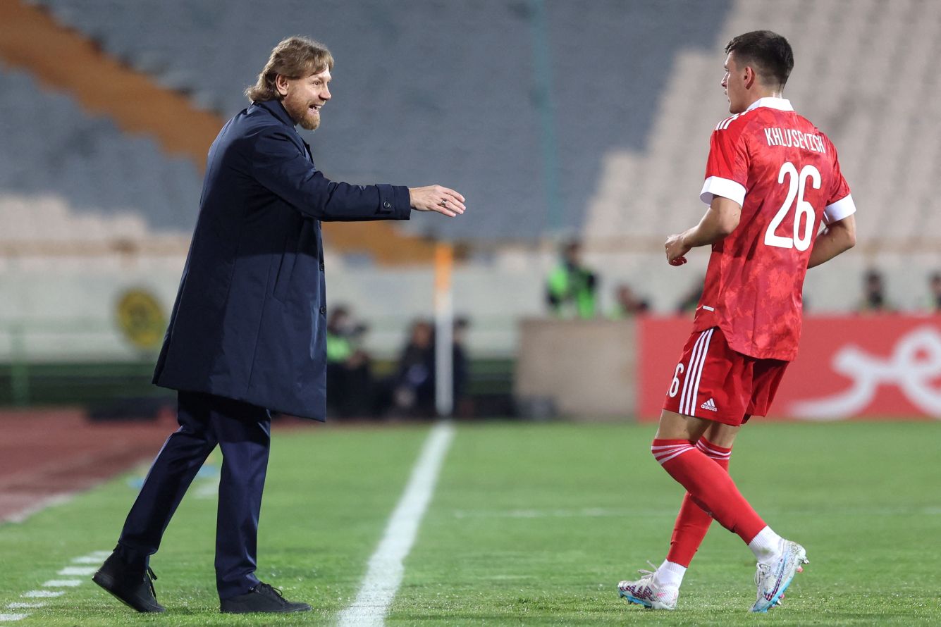 Majid Asgaripour / WANA / Reuters / Scanpix / LETA Международный товарищеский матч Иран — Россия. Тренер России Валерий Карпин с Даниилом Хлусевичем. Стадион «Азади», Тегеран, Иран, 23 марта 2023 года