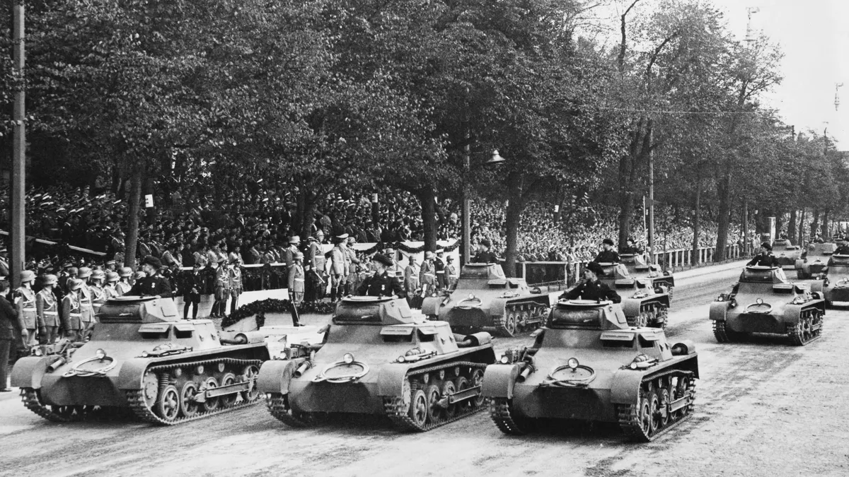 Адольф Гитлер рядом с Бенито Муссолини и другими нацистскими офицерами, принимают приветствие от моторизованного соединения легких танков Вермахта Panzerkampfwagen I Ausf A (Sd.Kfz. 101). Фото: FPG/Archive Photos/Getty Images