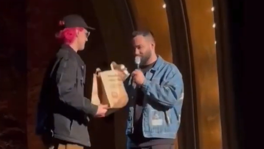 О ролике. На ролике, о котором идет речь, Гарик Оганисян стоит на сцене, к нему подходит Александр Долгополов и вручает ему якобы статуэтку в пакете. Это похоже на то, что произошло в петербургском кафе Street Food Bar № 1 — Дарья Трепова передала Владлену Татарскому статуэтку. Однако комики не называли никаких имен и не заявляли, что пародируют случившееся.
