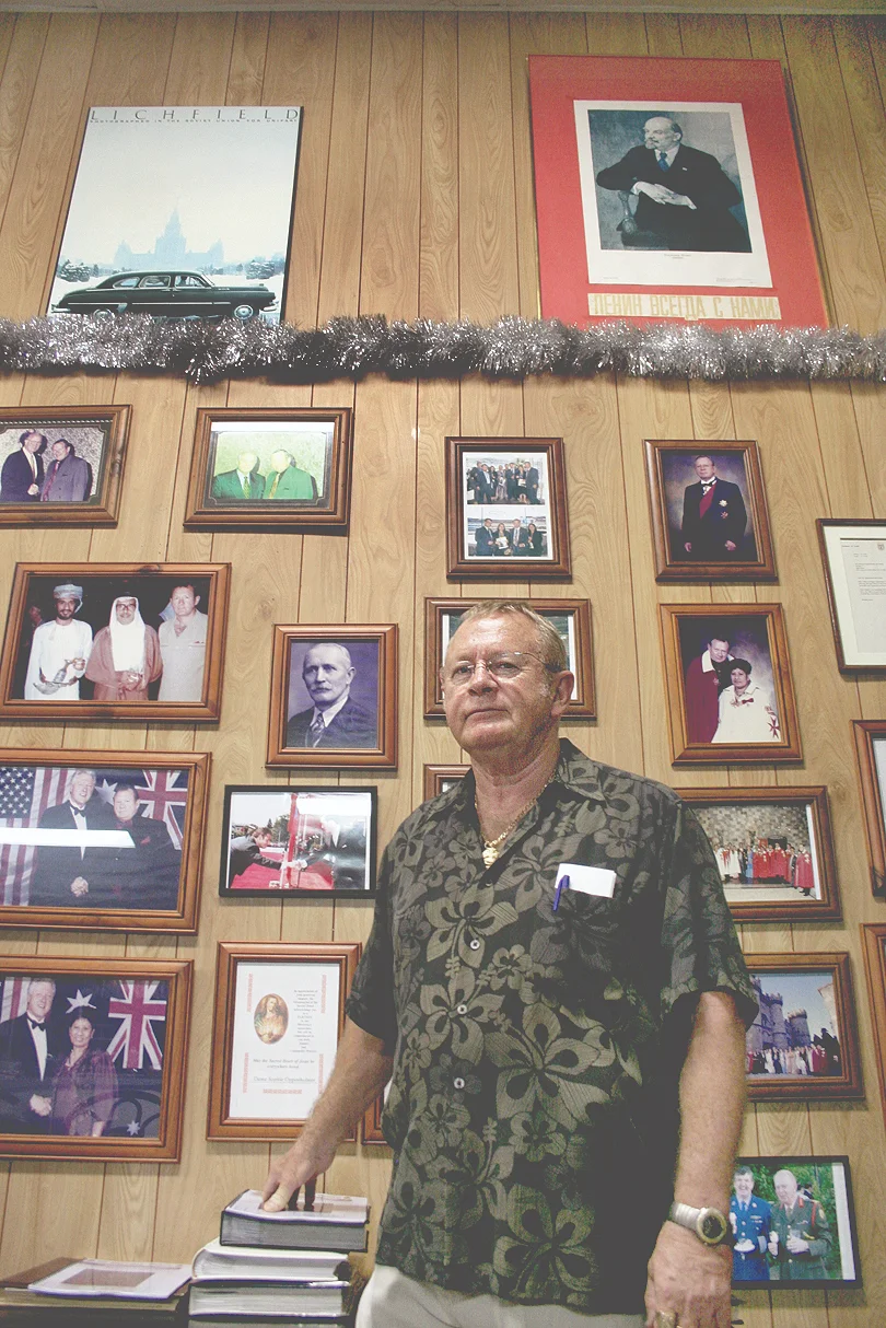 Сам рыцарь с бутылкой пива носится по гостиной, показывая рекомендательное письмо от компании «Текма», дружескую переписку с Евгением Примаковым, орден Ленина (якобы свой) и Мальтийский крест (свой наверняка). Он сыплет русскими названиями и именами, вспоминает прием в Австралии, где познакомился с Горбачевым, визит в Ирак, где встретил Хусейна, и то, что когда-то в торгпредстве в Германии видел юного Путина: «Шустрый, кажется, был пацан».
