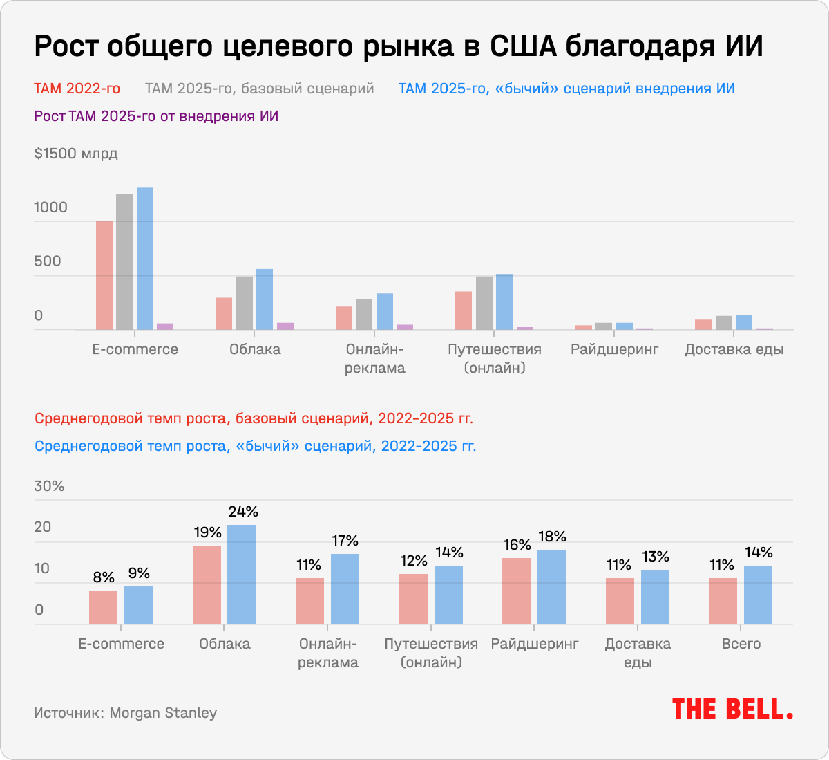 Искусственный интеллект — не просто очередная хайповая тема: он способен улучшить не только онлайн-поиск, но и многие другие бизнесы. Хотя многие компании используют ИИ достаточно давно, недавний прорыв, ознаменованный запуском ChatGPT нового поколения, привлекает к технологии больше внимания инвесторов: акции стартапов, в названии которых есть ИИ, взлетают на десятки процентов. Аналитики Morgan Stanley выделили компании, которые действительно могут выиграть от дальнейшего улучшения и внедрения ИИ.