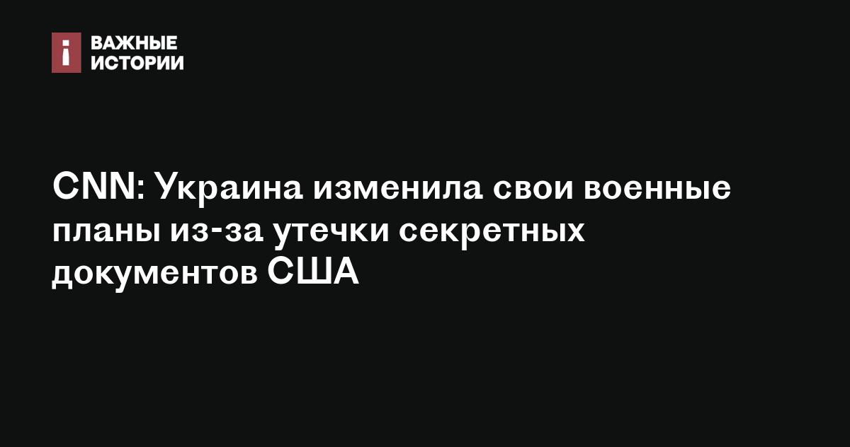 CNN: Украина изменила свои военные планы из-за утечки секретных документов США