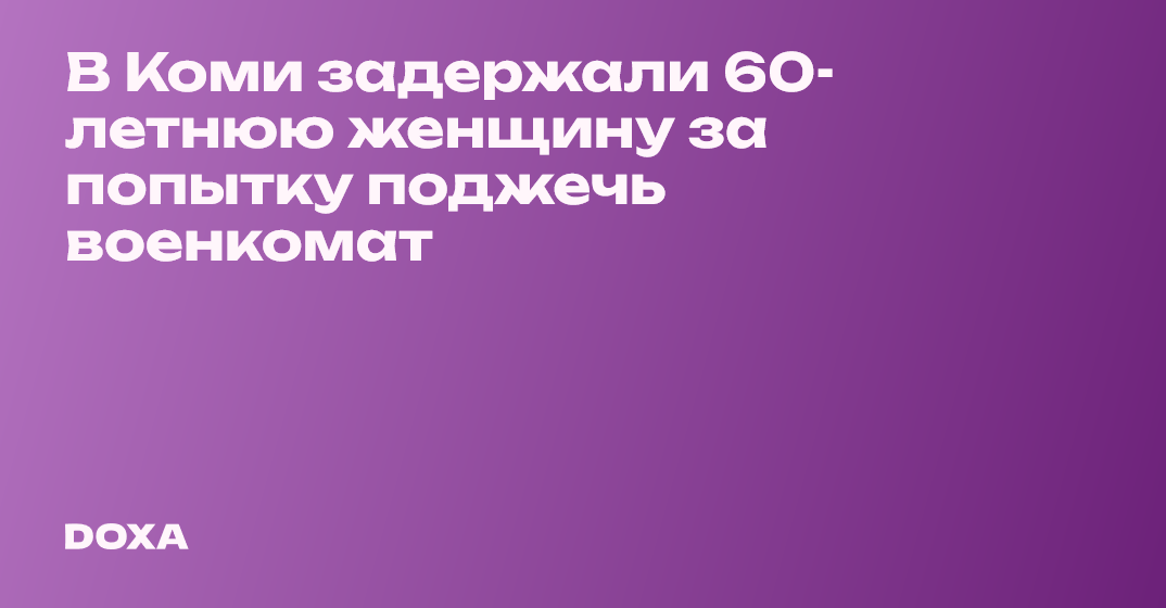 В Усинске (Коми) за попытку поджечь военкомат задержали 60-летнюю работницу клининговой компании.