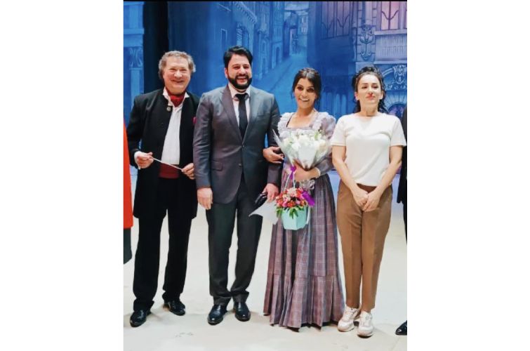 Бывший главный дирижер Одесской оперы Вячеслав Чернухо-Волич и новый глава Бакинской оперы Юсиф Эйвазов рядом с артисткой оперы Афак Аббасовой после "Богемы" в Баку. Фото: Facebook Афак Аббасова