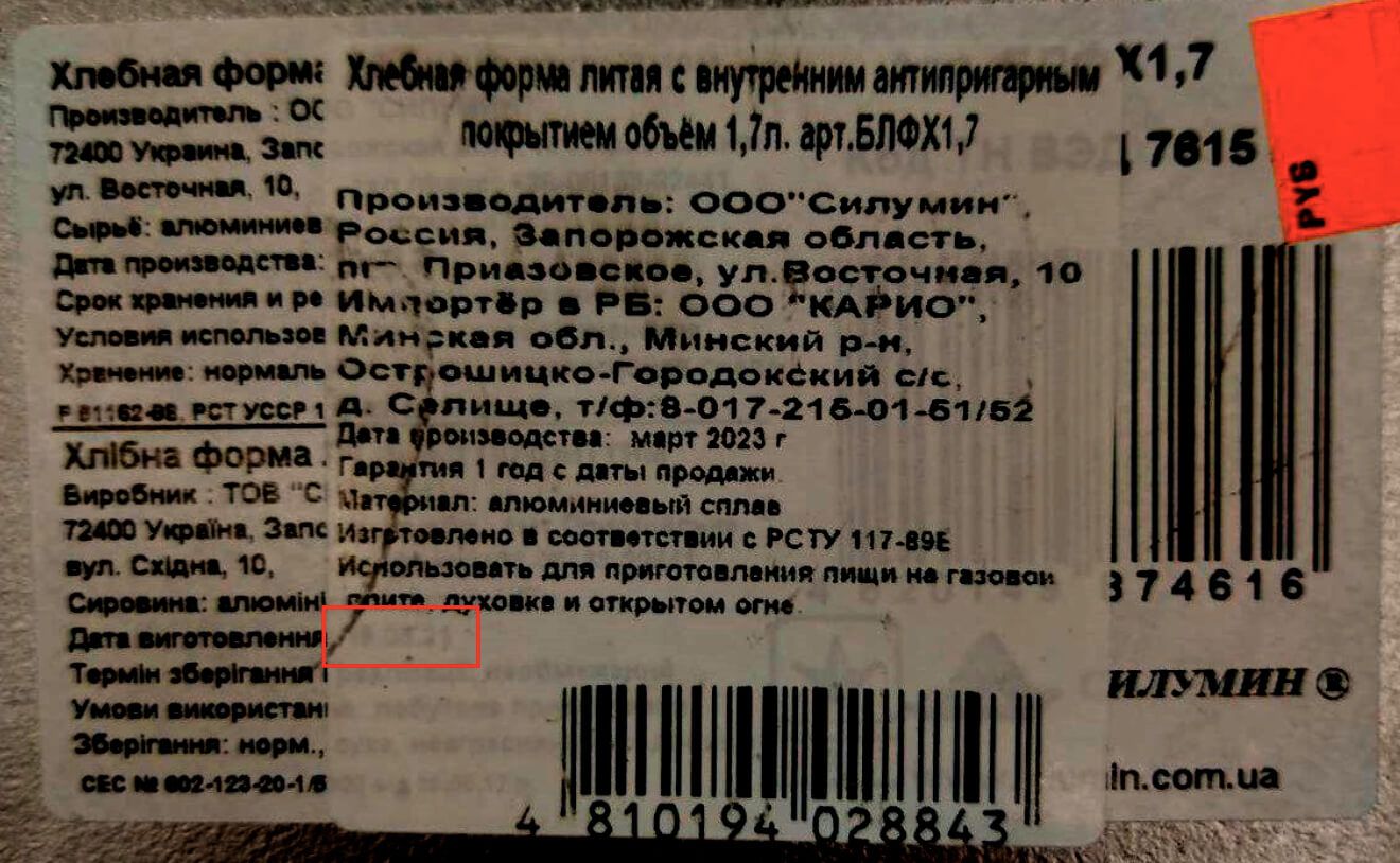 В ЦУМе столицы Беларуси Минска продается алюминиевая хлебная форма, которую произвели в Запорожской области Украины - на той части, которая сейчас оккупирована, пишет motolko.help.
