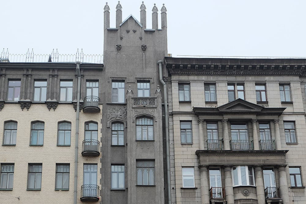 На фасадах угловой части дома можно разглядеть изображение герба с тремя «шествующими смотрящими впрямь львами» — геральдическими леопардами. Это герб Эстляндской губернии Российской империи, откуда были родом основатели «Помещика». Почти аналогичный символ и у современной Эстонии.