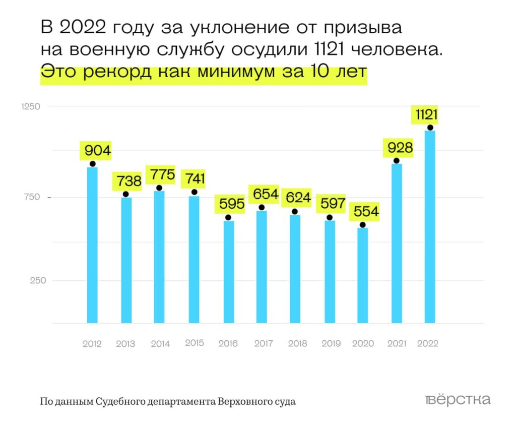В 2022 году за уклонение от призыва на военную службу осудили 1121 человека - Вёрстка
