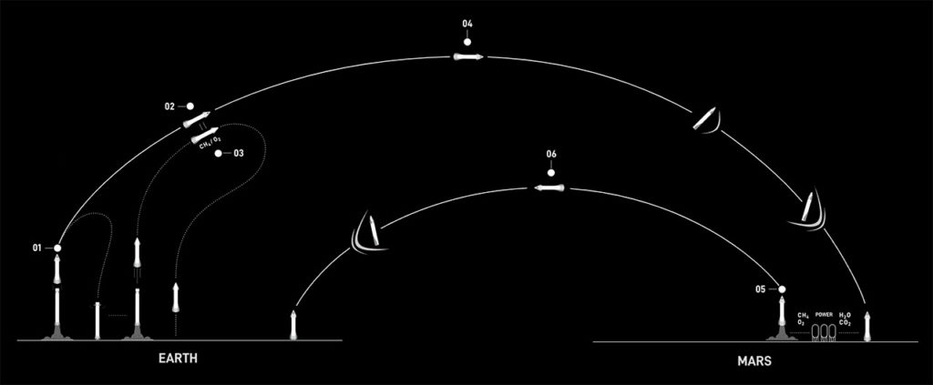 У Маска есть мотив использовать именно метан. Дело в том, что с помощью реакции Сабатье можно производить топливо на Марсе из местного сырья — из воды (на Марсе много водяного льда) и углекислого газа (CO2) из атмосферы. Эту идею впервые предложил Роберт Зубрин, автор проекта Mars Direct, и Маск, разрабатывая сценарий марсианской экспедиции, прямо рассчитывает на этот ресурс.