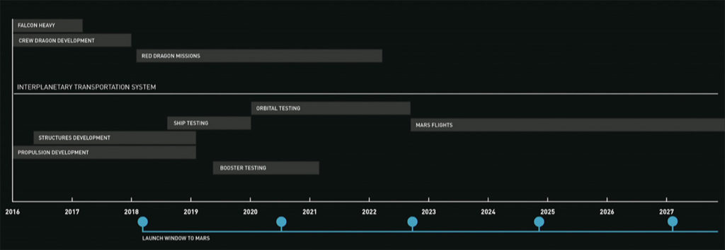 С 2016 года облик и название марсианской космической системы существенно поменялись. Например, в 2019 году было решено отказаться от углеволокна в качестве основного материала для постройки в пользу другого, не менее экзотического для ракетостроения материала — нержавеющей стали. Углеволокно обладает экстремальной прочностью, но теряет ее, если мы, например, решим просверлить в нем отверстие.