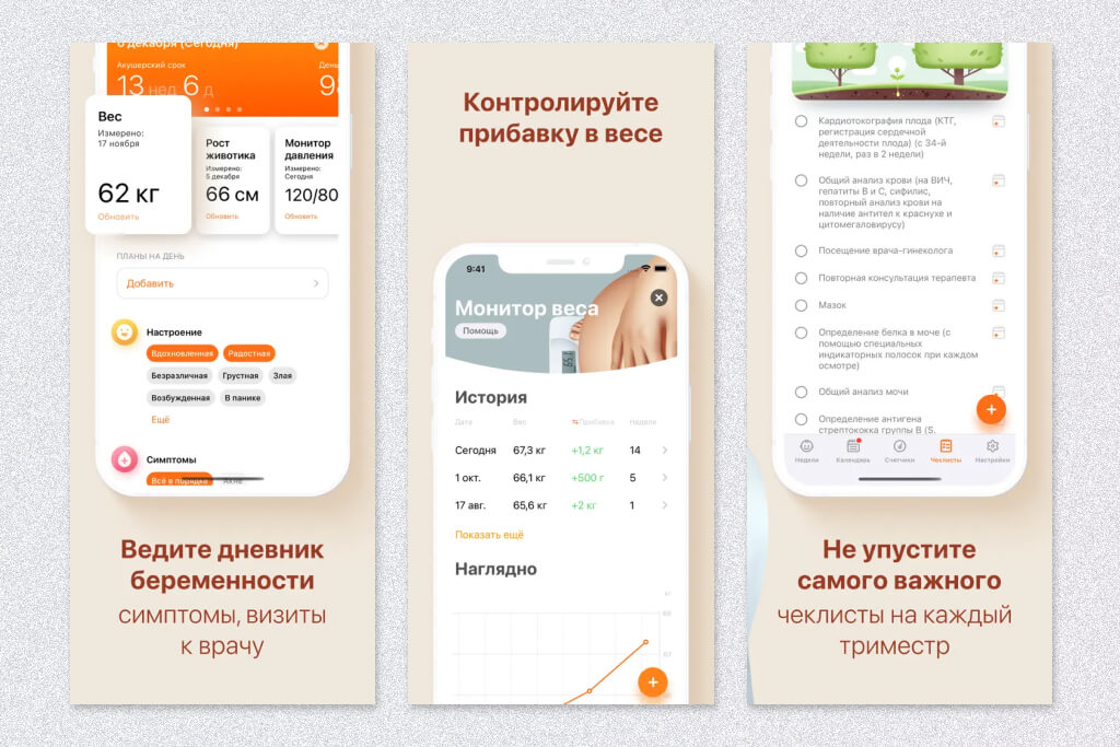 Приложение отслеживает протекание беременности: помогает следить за весом и симптомами, напоминает о походах к врачу. В нем есть счетчик схваток, возможность отмечать все нюансы беременности и загружать снимки УЗИ.
