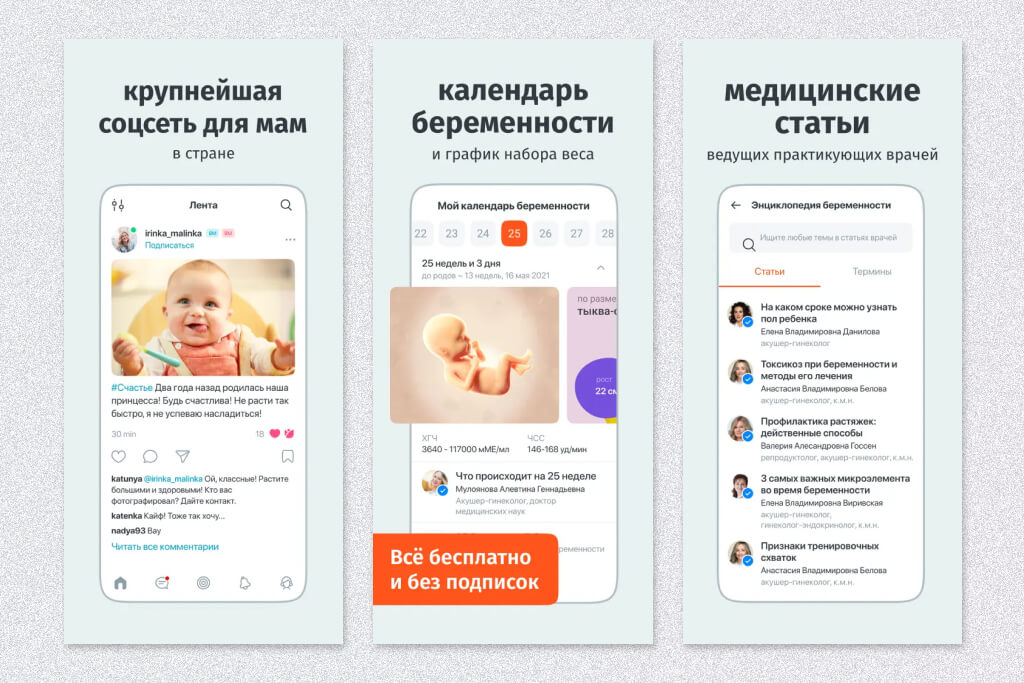 Календарь для отслеживания беременности, который может помочь в первые этапы жизни младенца: в нем есть советы, отзывы о роддомах, трекер сна, кормления и прикорма. А самое любопытное — сообщество пользовательниц. Здесь можно найти чат с беременными на том же сроке, что и вы, если есть потребность в общении.