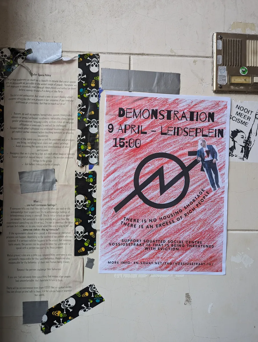 Главным лозунгом сквоттеров на митинге стали слова: «Нехватки жилья нет — есть переизбыток богатых людей». Выдвигая его, организаторы попытались привлечь на свою сторону людей, обеспокоенных ключевой социальной проблемой, которая сейчас наблюдается в Нидерландах, — кризисом жилья.