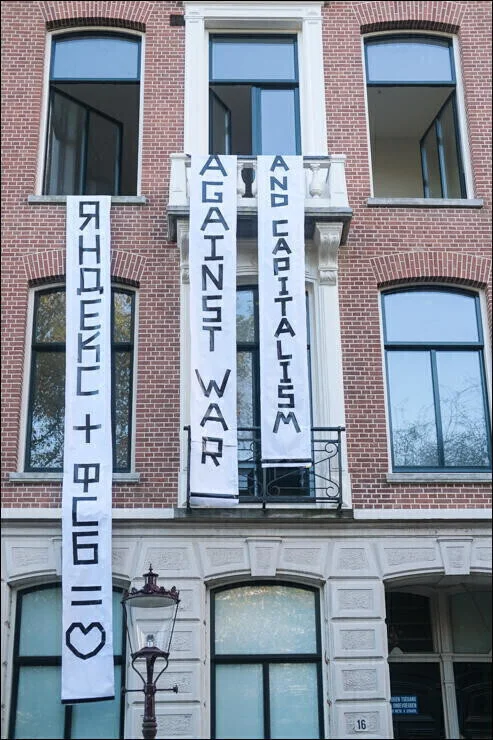 31 октября 2022 года с окон и балкона особняка сооснователя и бывшего генерального директора «Яндекса» Аркадия Воложа, купленного им в самом центре голландской столицы за несколько миллионов евро, спустили баннеры «Яндекс+ФСБ=[Любовь]» и «[Мы] против войны и капитализма». Это сделали местные сквоттеры, захватившие здание. Судя по символике, часть из них принадлежит к местному сообществу левых анархистов Joe’s Garage, которое занимается созданием социальных центров в захваченных зданиях.