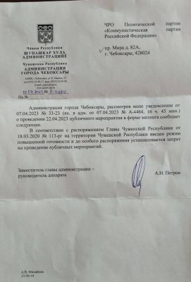 Мэрия Чебоксар отказала местному отделению КПРФ в согласовании митинга в день рождения Ленина 22 апреля. Об этом сообщает телеграм-канал «Сердитая Чувашия».