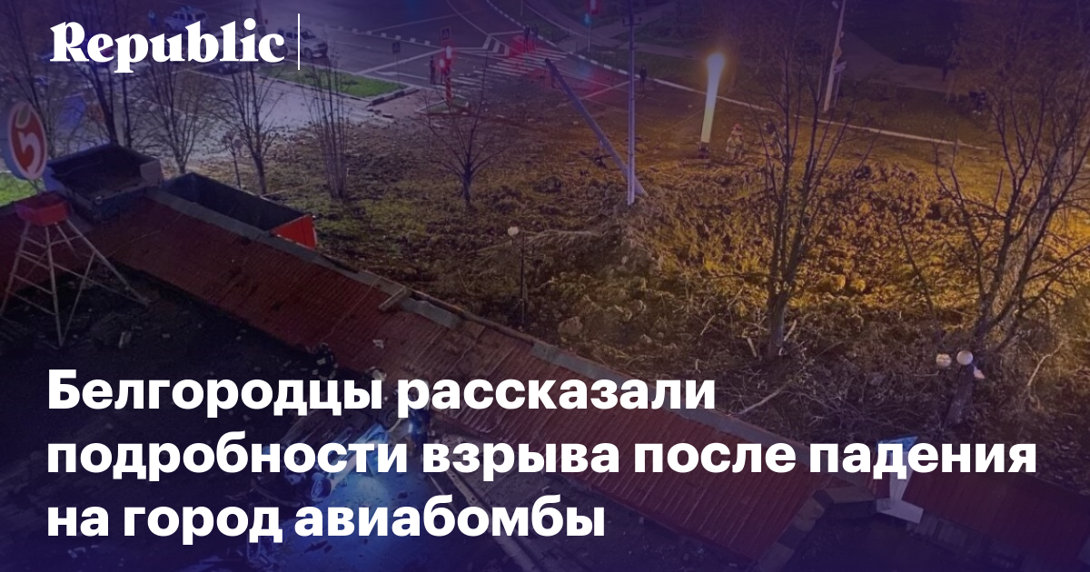 В Минобороны РФ заявили, что взрыв произошел из-за «произвольного нештатного схода боеприпаса» с пилона пролетавшего над городом российского самолета Су-34. Эксперты считают, что на Белгород могла упасть одна из самых тяжелых авиабомб. Местные жители рассказали Republic, что такого сильного взрыва не припомнят с начала полномасштабной войны в Украине. «Тряхнуло как при землетрясении», «гул стоял страшный» — делятся они впечатлениями. Все подробности — в нашем материале.
