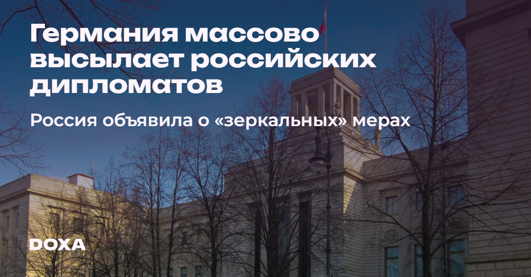 Власти Германии приняли решение о массовой высылке сотрудников дипломатических представительств России, в ответ на это МИД России объявил о «зеркальной» высылке немецких дипломатов.
