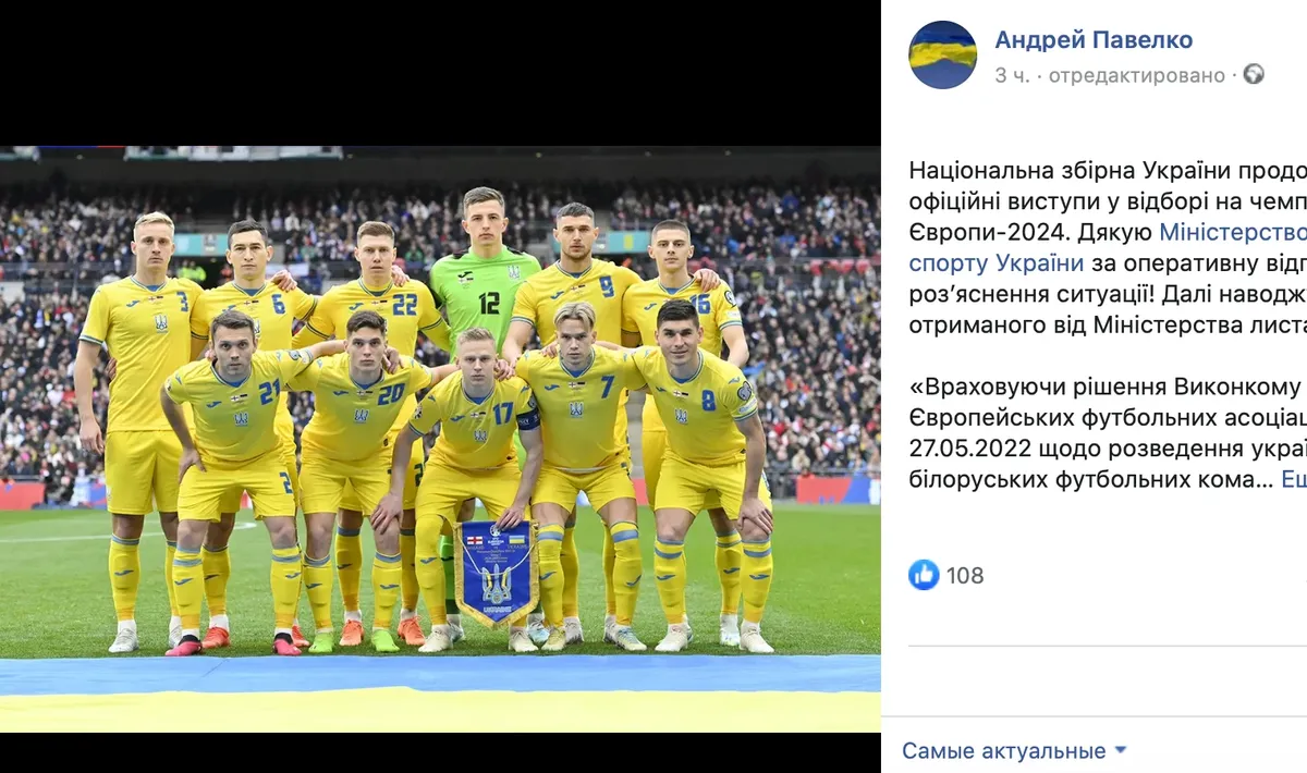 «От себя добавлю, что уже завтра рабочая группа представителей национальной сборной отправится в Германию, чтобы проинспектировать место для проведения учебно-тренировочных сборов команды в июне. Также нет никаких препятствий для выступлений молодежной сборной Украины на Евро-2023. Поэтому уже в июне ждем ярких выступлений команды Руслана Ротаня на полях Румынии и Грузии», — написал Павелко.