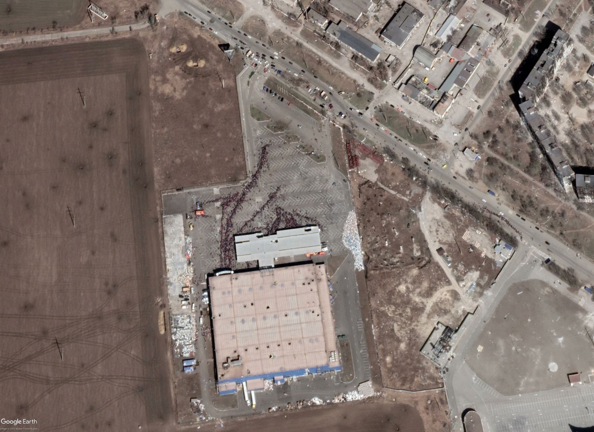 On April 25, Google Earth and Google Maps updated their satellite images of Mariupol. The previous satellite images were from June 2021, before Russia’s full-scale invasion of Ukraine. The new photographs were taken at different times following the start of the war, which is why fires are visible in some parts of the city, while in other areas occupying authorities are seen constructing new buildings. What’s more, one newly reconstructed area of Mariupol, which Vladimir Putin visited in March 2023, isn’t visible at all. The following photographs from Google Earth offer a glimpse at the extent of the destruction inflicted upon Mariupol since the start of the Russian invasion.