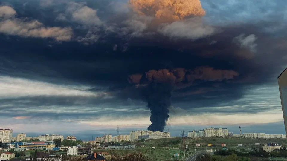 A drone attack on Sevastopol, the largest city in Crimea, has set fire to an oil reservoir, wrote city governor Mikhail Razvozhaev on his Telegram channel early Saturday.