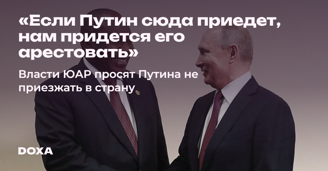 «Если Путин сюда приедет, нам придется его арестовать» — власти ЮАР просят Путина не приезжать в страну