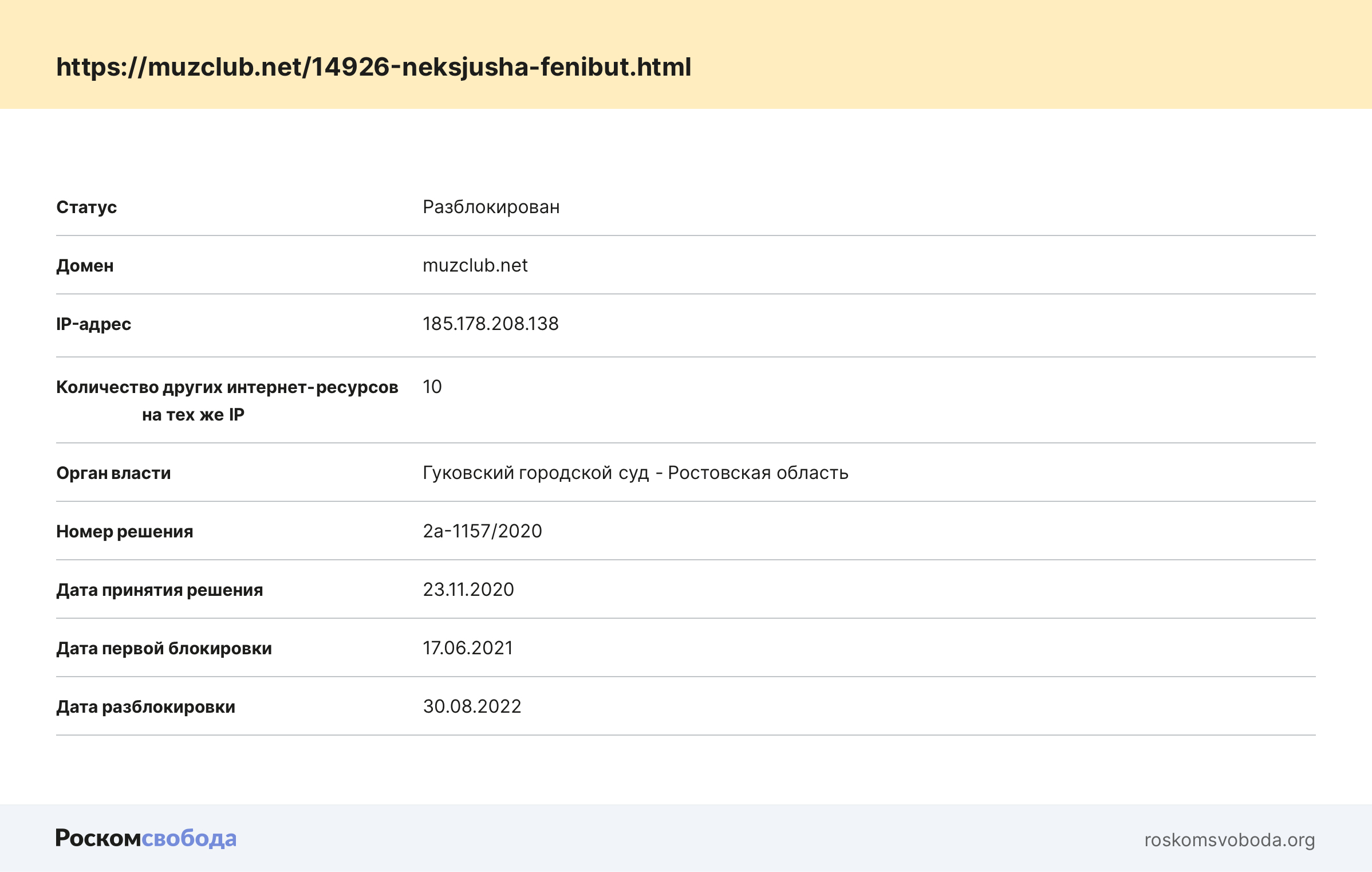 Скорее всего, блокировка в тот раз происходила согласно решению Гуковского городского суда Ростовской области: