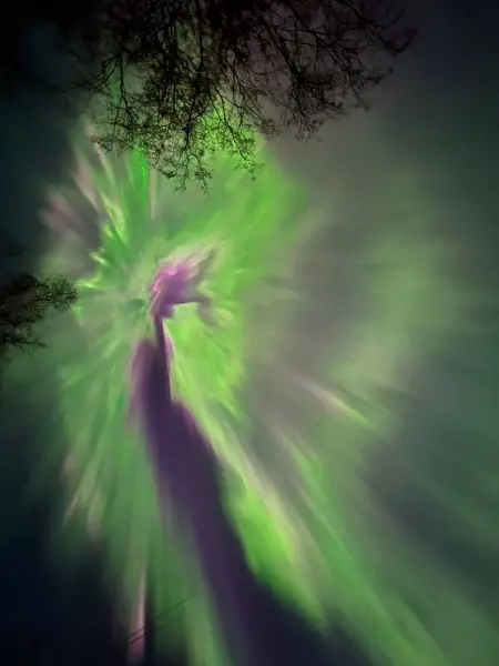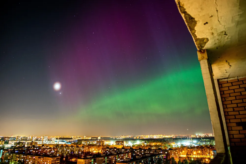24 апреля выброс добрался до Земли, и социальные сети затопили снимки ночного неба. Про северное сияние в небе сообщали жители Ленобласти, Москвы, Подмосковья, Ярославля, Свердловской области, Перми, Татарстана и других регионов — даже тех, где северное сияние крайне редкий гость. По сообщениям специалистов Института прикладной геофизики, причиной атмосферного явления стала сильная магнитная буря. В пике события степень возмущенности магнитного поля Земли достигла уровня G4 (по шкале, где G5 — экстремально сильно, а G1 — слабо).