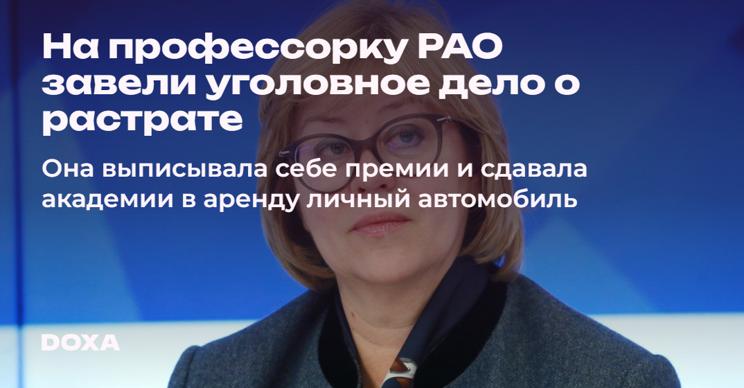 На профессорку РАО завели уголовное дело о растрате за выписанные себе премии и сдачу академии в аренду личного автомобиля