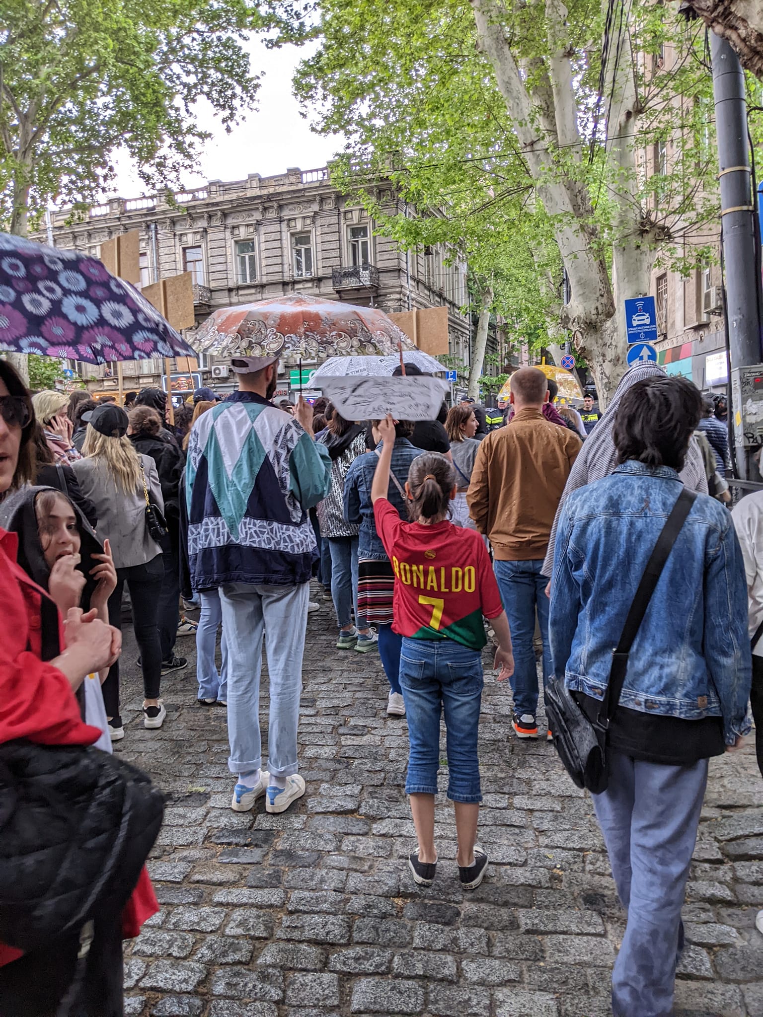 В митинге участвовали и взрослые и дети. Одним из марширующих был восьмилетний Петре, сын Макуны Гочиашвили. Он участвовал и в предыдущих акциях протеста. На одной из акций у парламента Петре в микрофон заявил: «Лекарство детям! Хотим, чтобы дети получили лекарство. Даешь лекарство!»