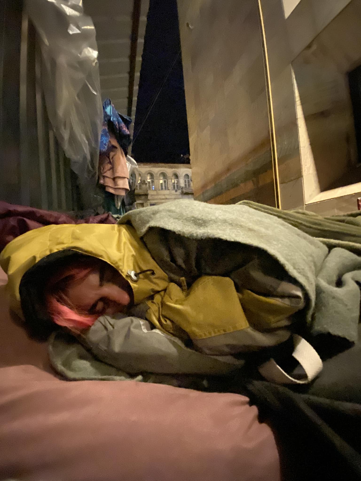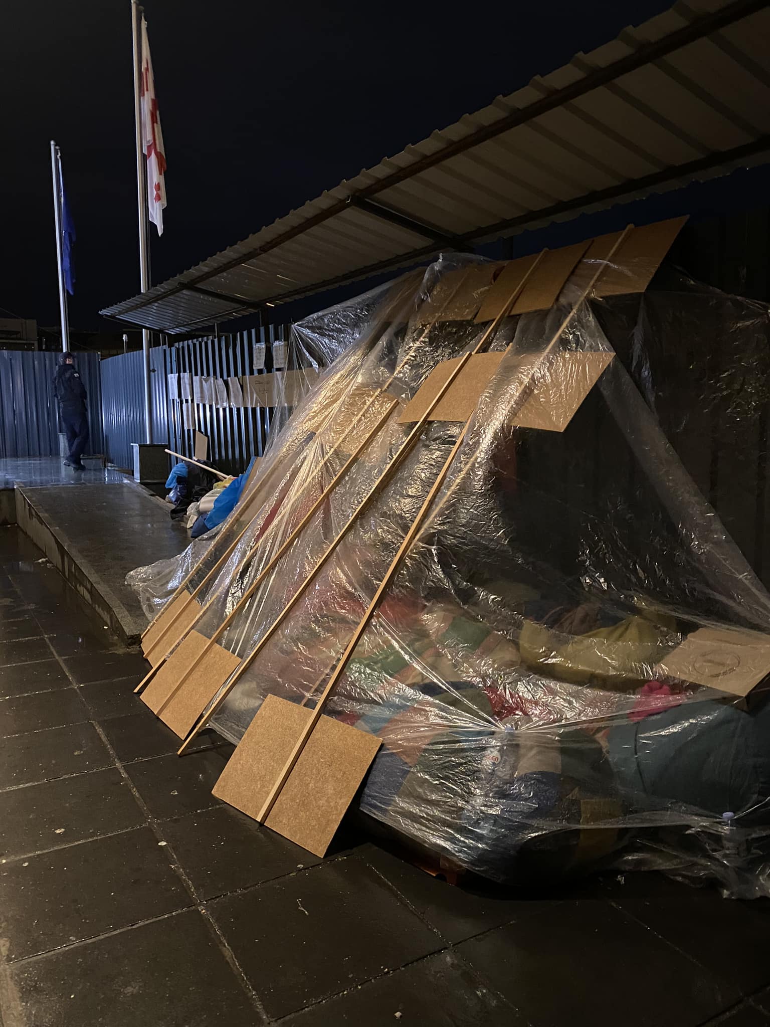 «Ни один закон не нарушается даже установкой палатки. Но мы не хотели конфликта и подумали об альтернативном убежище. Правоохранители отобрали у нас целлофан. Правительство Грузии, действительно браво! [Народный защитник Грузии] Леван Иоселиани, мы ждем тебя, сейчас самое время выполнить свою функцию», — написала Гочиашвили в фейсбуке.