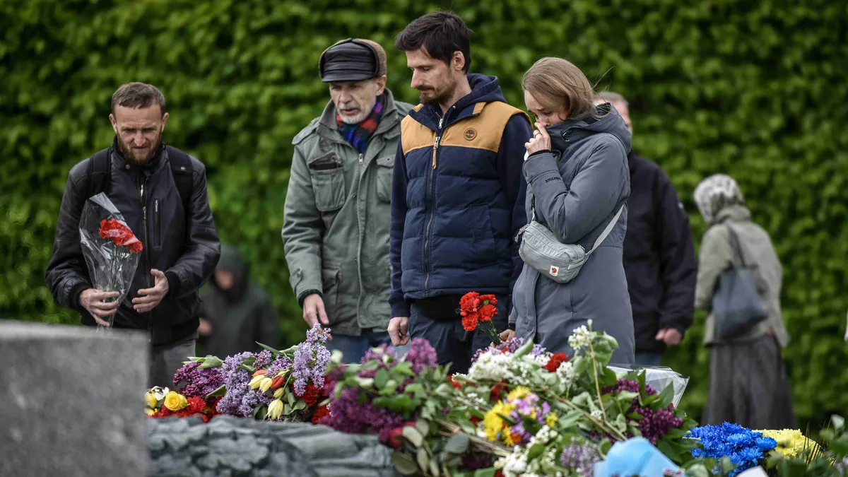 Люди несут цветы к могиле неизвестного солдата в Киеве, 9 мая 2023. Фото: EPA-EFE / OLEG PETRASYUK