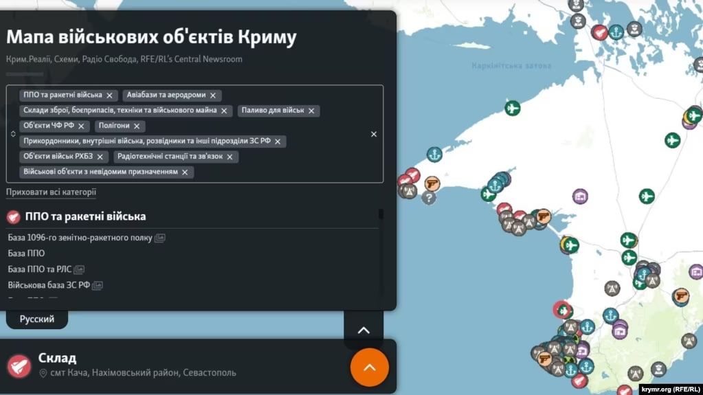 "Радио Свобода" опубликовала подробную карту российских военных объектов в Крыму
