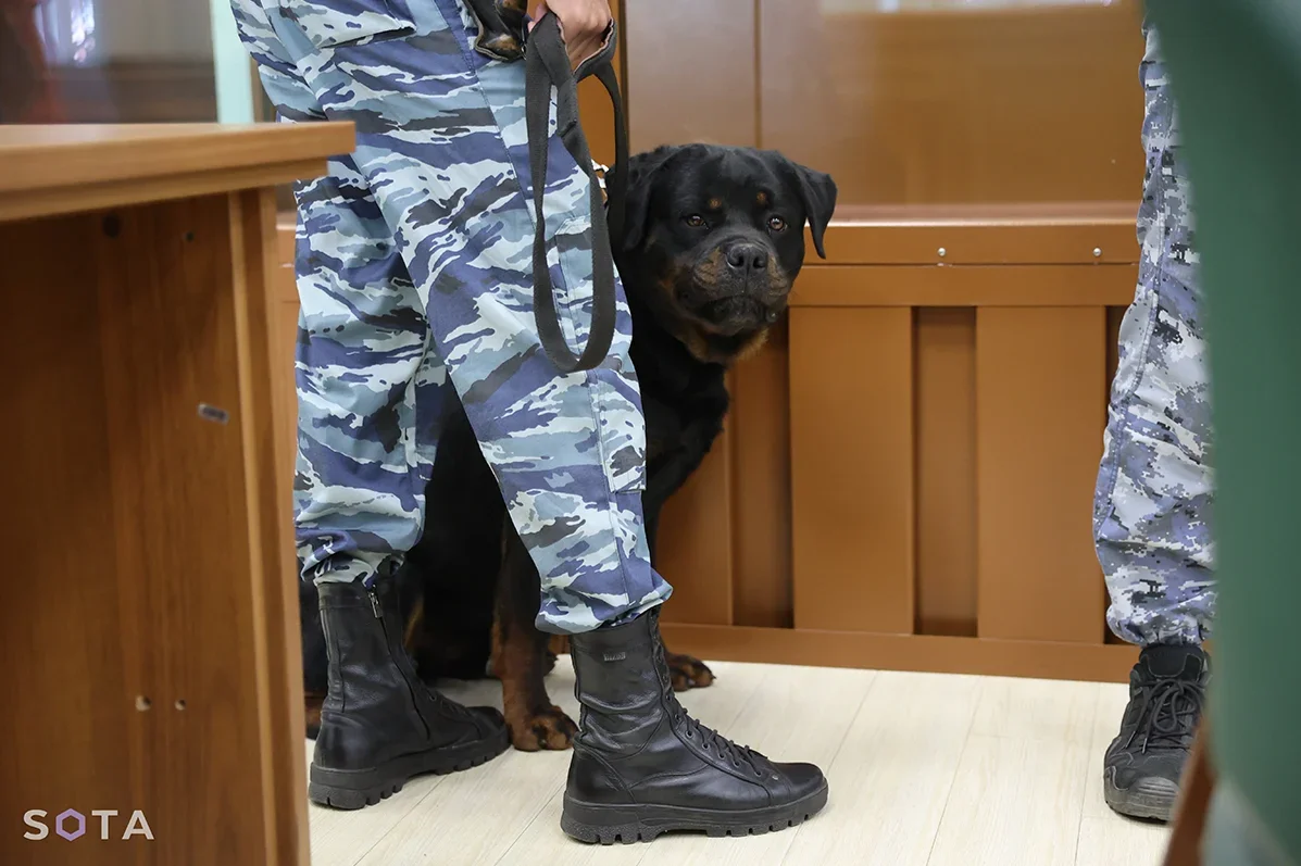к зеленому бархату скамей с лакированными завитушками, напоминающему о временах Фонвизина, и к просторному амфитеатру для присяжных, где рассажена уцелевшая пресса. К этой незабываемой интонации, с которой председательствующий судья Бровко (Сергей Владимирович) с нехарактеризуемым «собирательным» лицом отчитывает аккредитованных журналистов за репортажи с заседания, выспрашивает у каждого дату и место рождения, выгоняет «из класса» корреспондента сетевого издания SOTA vision за опубликованное фото свидетеля обвинения («эшника»), отчитывает свидетеля защиты лингвиста Жаркова за то, что тот уходит в очевидно не соответствующую атмосфере военного суда семиотическую этимологию, прикрикивает на адвокатов, что нельзя шептаться между собой…