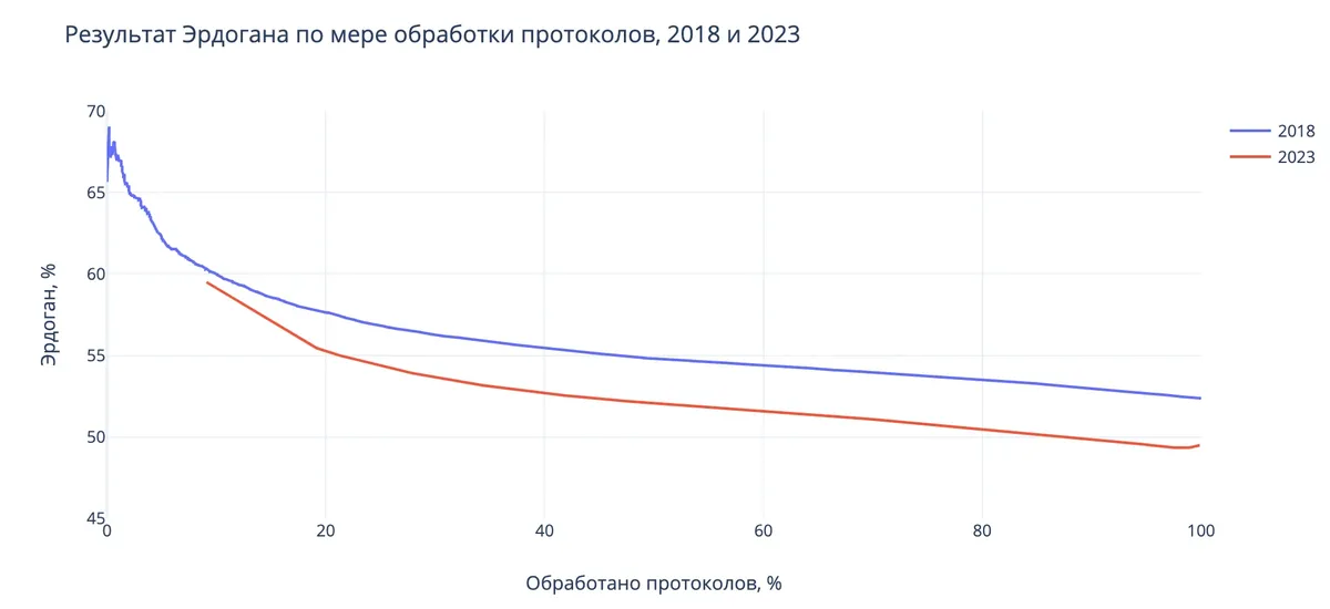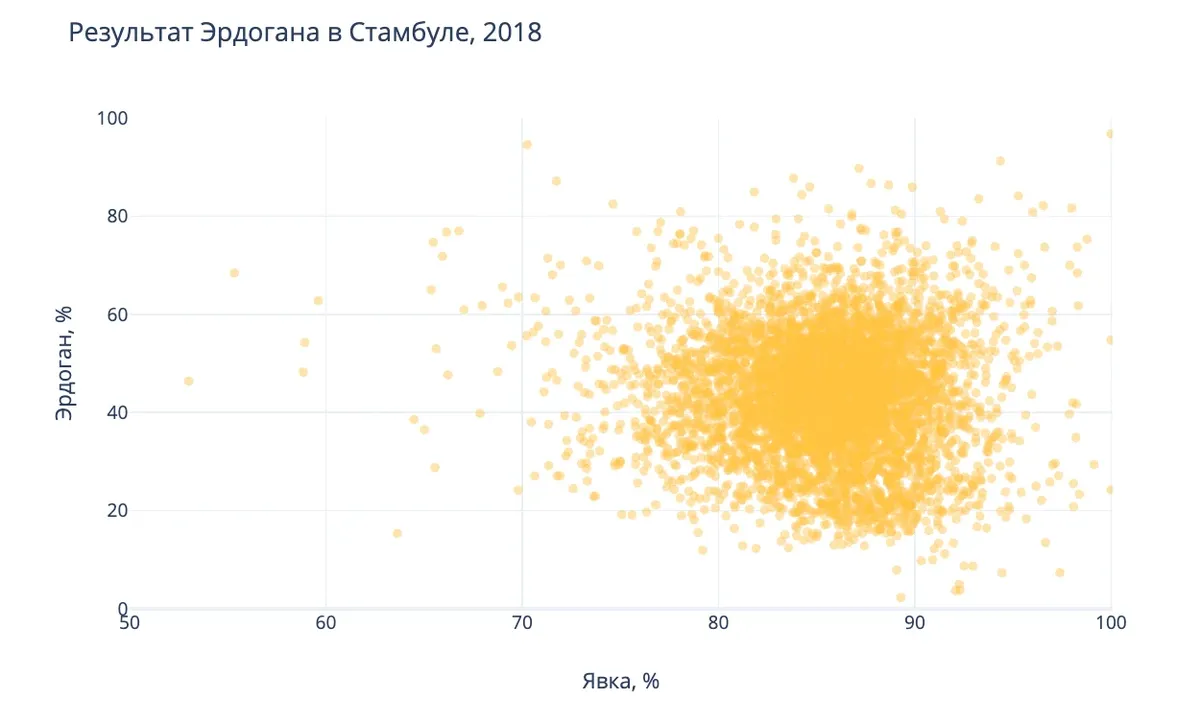 Для сравнения: в России вбрасывают по 10–15 млн голосов даже там, куда значимых конкурентов не допускают. Кажется, в клубе диктаторов на Эрдогана уже косо поглядывают (геополитическая шутка. — Прим. ред.).