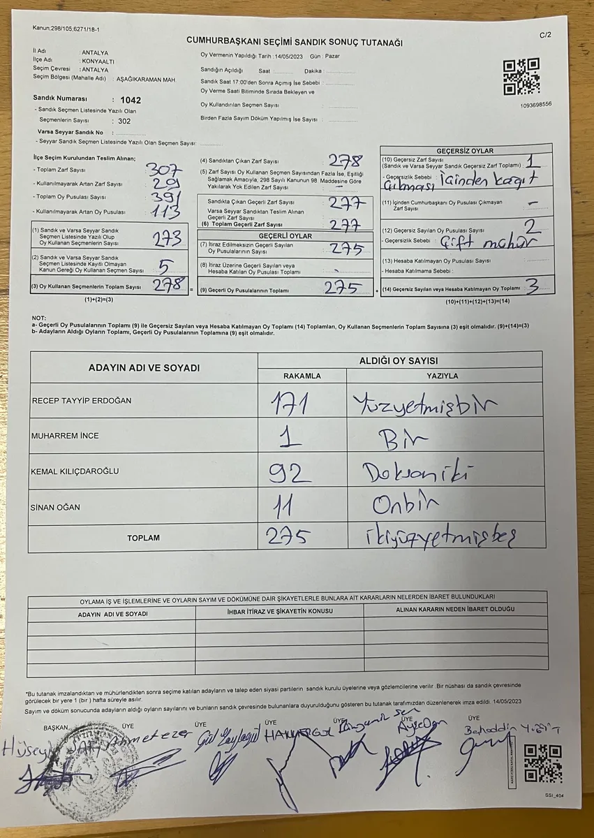 Когда выборы заканчиваются, сканы всех протоколов вывешивают на сайте YSK (аналог ЦИК). Видны и результаты, и подписи членов комиссий. Один минус: на время выборов все ресурсы ЦИК прикрывают, а вечером в день выборов даже сайт ЦИК с информационными материалами был спрятан в Сети (были удалены DNS-записи доменов).