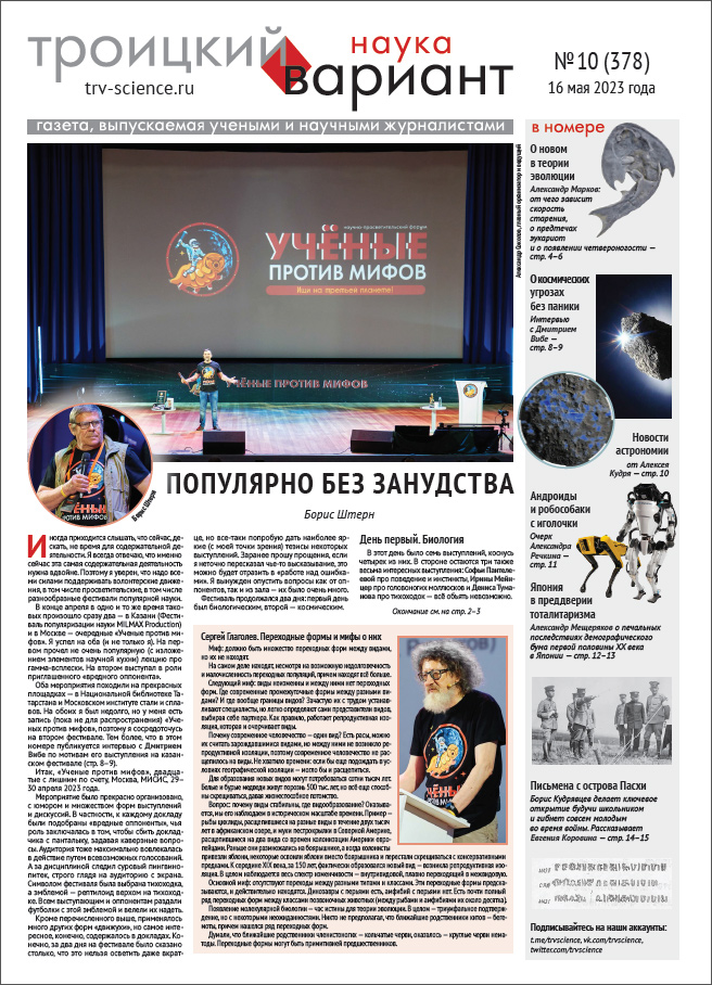 Весь номер газеты «Троицкий вариант — Наука» № 378 от 16 мая 2023 года в PDF