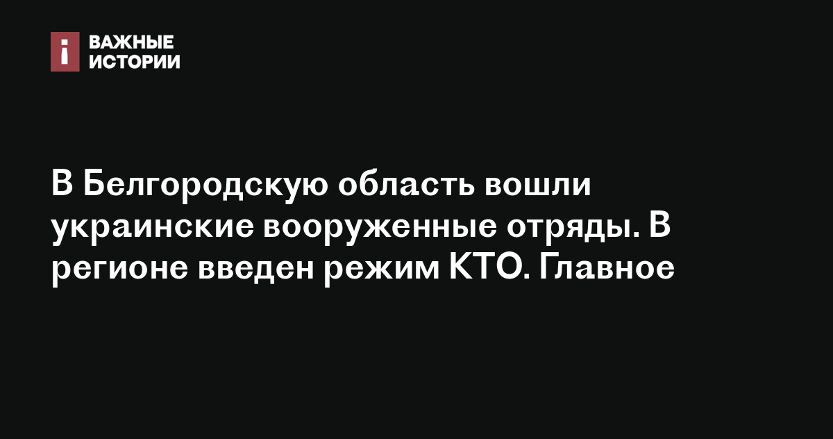 В Белгородскую область вошли украинские вооруженные отряды. В регионе введен режим КТО. Главное