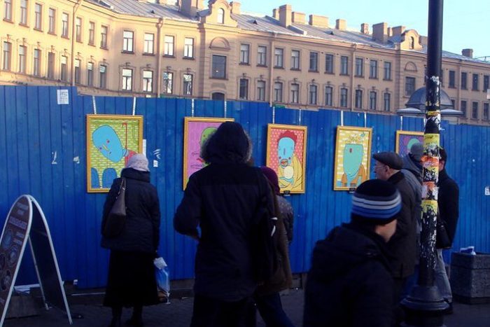 Осенью 2014 года художник Миша Маркер впервые «вышел на улицу» и организовал мини-выставку на Сенной площади. Он разместил пять картин о «внутреннем состоянии человека» на заборе из профнастила, наклеил таблички, сфотографировал, немного прогулялся, вернулся — а картины исчезли.