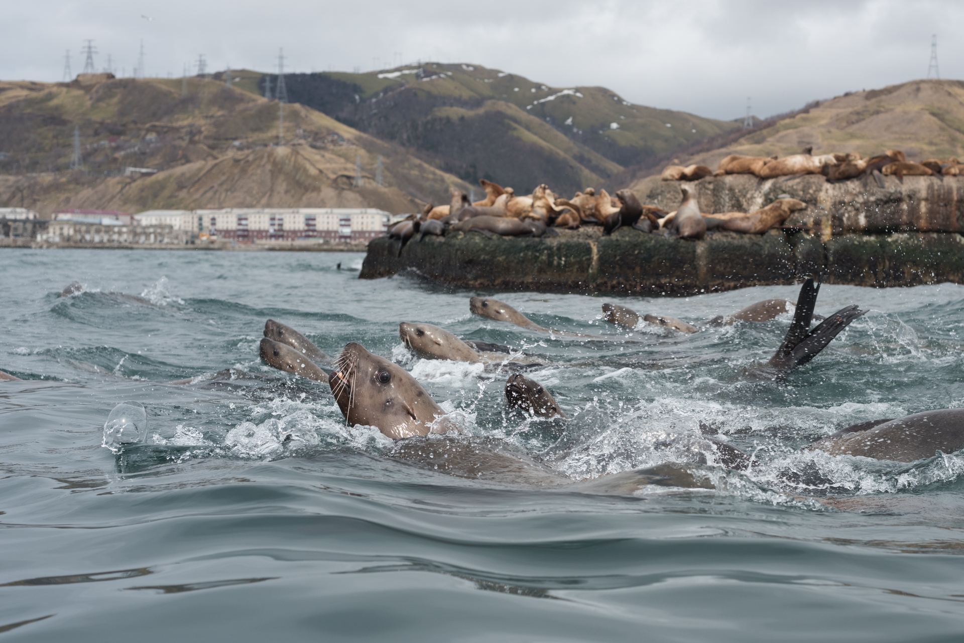 Невельск зажат между сопками и морем. Несколько дней назад к берегам тут приплыли сивучи. К их лежбищу сейчас снуют резиновые лодочки с платными экскурсиями.