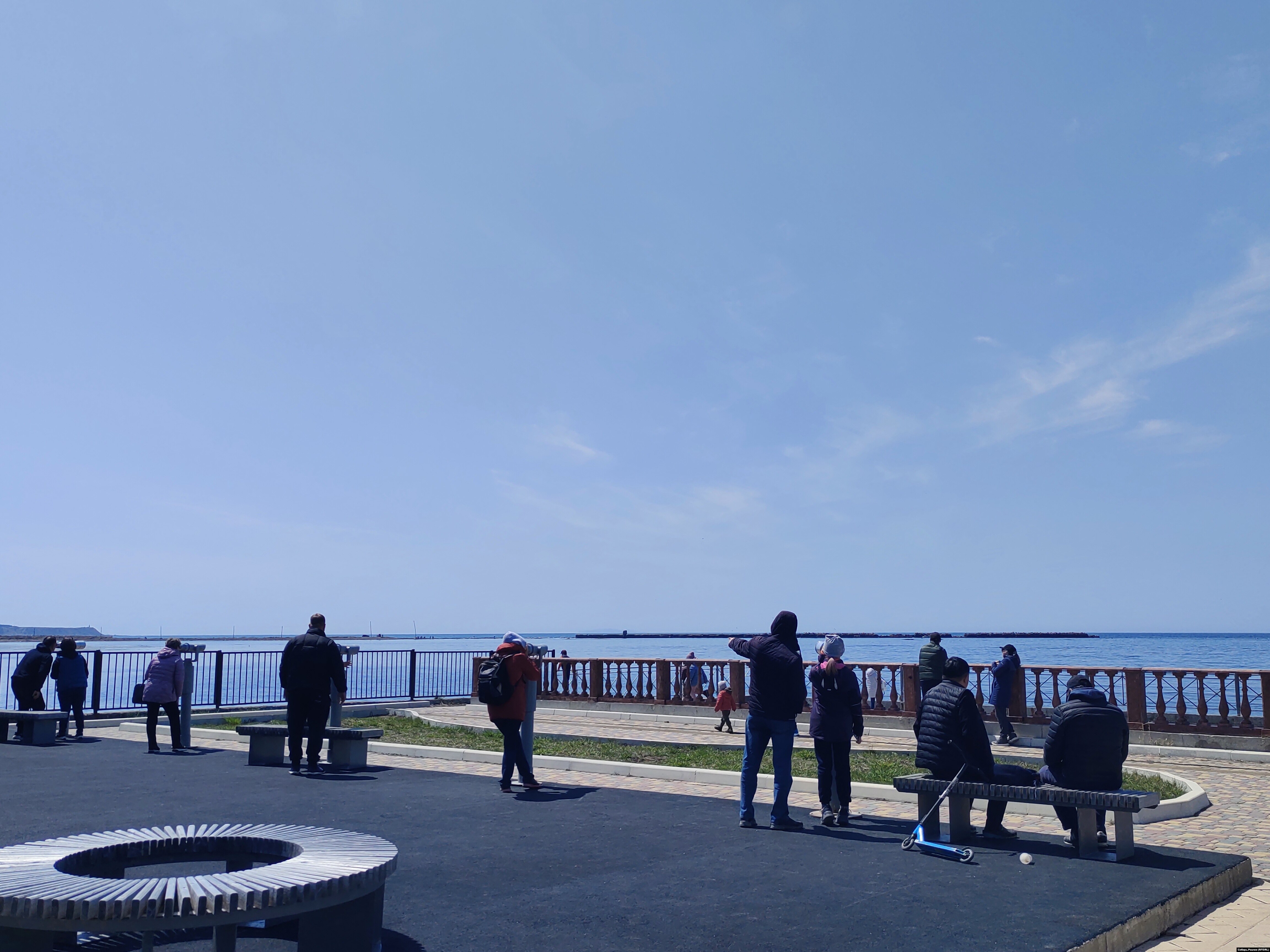 На набережной много народа, парковка забита недешевыми машинами. Кто-то фотографируется на фоне инсталляций, кто-то выгуливает детей. Все расслаблены и наслаждаются хорошей погодой и красивыми видами.